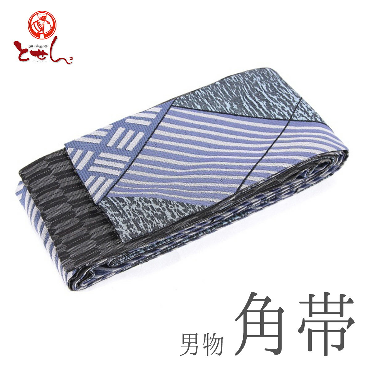 送料無料 男物 角帯 グレー×青紫×黒 ポリエステル 洗える 浴衣帯 花火大会 夏祭り 着物 ゆかた ユカタ 紳士 男性用 メンズ 袴用帯 袴下帯 御稽古 小袋 弓道 1点のみメール便OK 送料込み