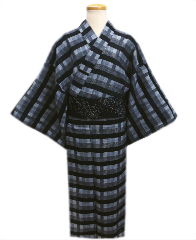 浴衣 メンズ レトロ moika 単品 男性 大人 黒系 ブラック 白 雨縞 ストライプ 綿 変わり織り 夏祭り 花火大会 仕立て上がり【あす楽対応】【Mサイズ】【Lサイズ】【送料無料】
