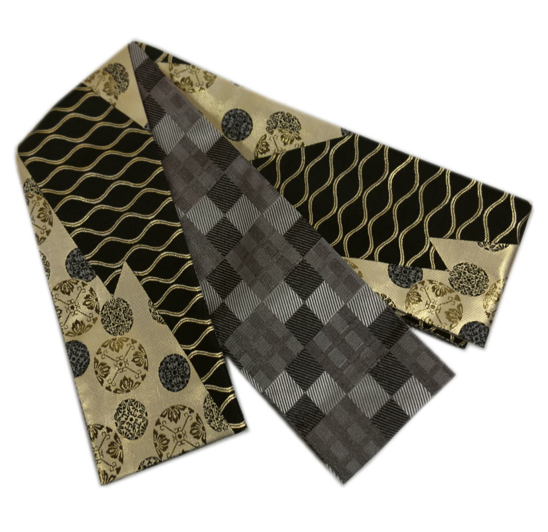 角帯 リバーシブル 小袋 メンズ 男物 男性 浴衣 着物 日本製 金糸入り 薄金黒地丸正倉院立湧 粋 両面