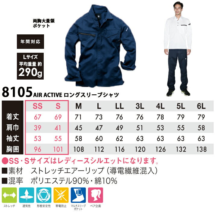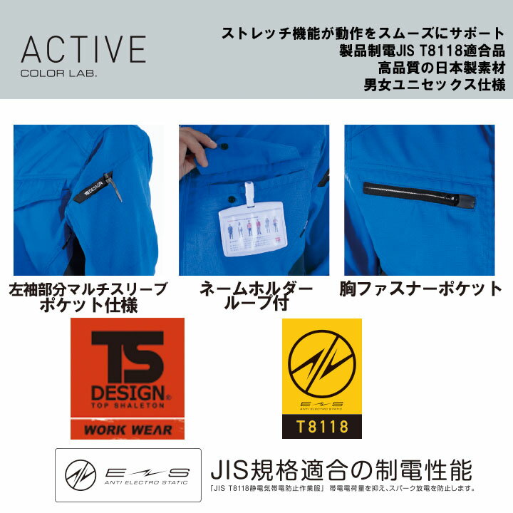 TS-DESIGNAIR ACTIVE ロングスリーブシャツ 8105 藤和 長袖シャツ 制電性能 ストレッチ 春夏 日本製 作業着 作業服 810シリーズ【4L-6L】