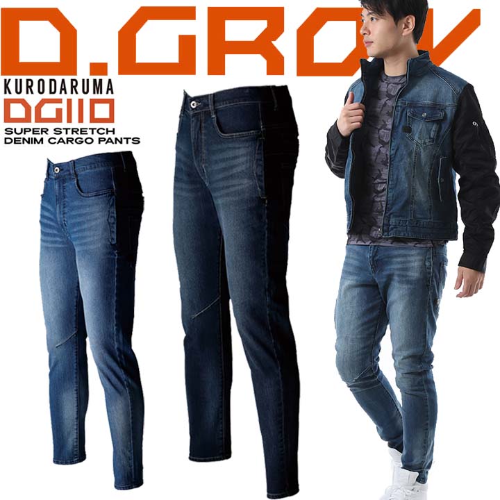 【即日発送】デニムパンツ 作業着 ストレッチカーゴ カーゴパンツ クロダルマ DG110 ストレッチデニム D.GROW ディーグロー メンズ バイク おしゃれ ズボン ジーパン 作業着 作業服