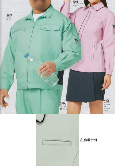 作業着 作業服 ジーベック 4302 レディースジャケット 13号・ピンク75[作業服から事務服まで総アイテム数10万点以上!][綺麗で丁寧な刺しゅう職人の店] ストレッチ