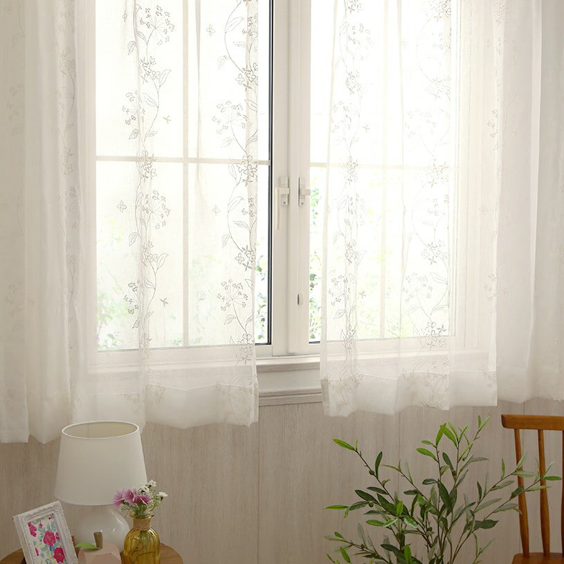 あす楽☆【送料無料】刺繍と裾のカットが、綺麗【縦45cm】刺繍と裾のカットが、綺麗『カフェカーテン』おしゃれな窓にお勧め アイボリー色の綿刺繍とチュール素材の相性が、とても良いです。ショート