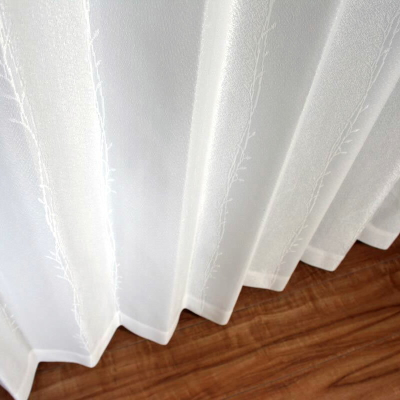 【形態安定加工付き】102サイズレースカーテン(L-0408)アイボリー幅130-150X丈195-238cm 1枚【プライバシー ミラー効果 UVカット効果 グリーン ベージュ リーフ ナチュラル リビング ダイニング】